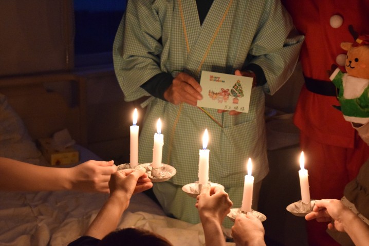クリスマス会を行いました 2018.12.17 お知らせ 大分三愛メディカルセンターでは、 毎年恒例のクリスマス会を12月15日(土)に実施しました。 14:00からは、ミニコンサートで稙田近隣の子どもたちが クリスマスソングを合唱。 夜には、サンタが病棟を回ってキャンドルサービスを行いました。 PDFはこちら 一覧に戻る