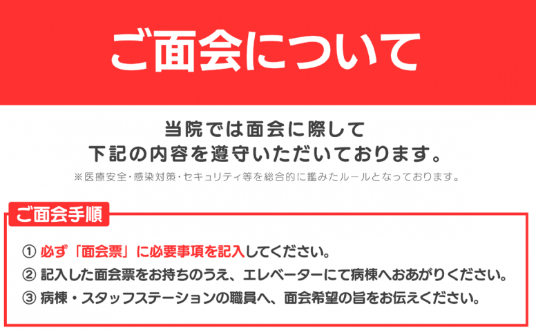 お知らせ【3月9日(月)~】面会ルール変更のお知らせ