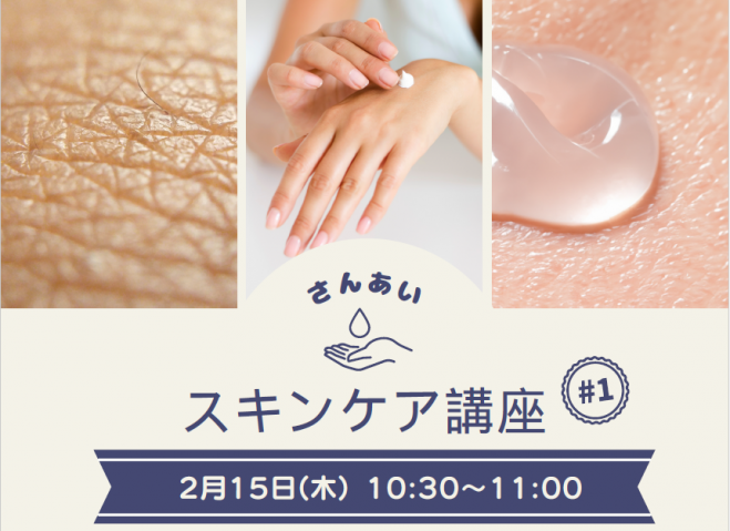 新たに「スキンケア教室」が始まります 2024.01.19 お知らせ 2月15日(木)に第1回「スキンケア講座」を開催いたします。 スキンケア講座は、皮膚ジャンルでエキスパートとして認められた認定看護師による講座です。 どなたでもご参加できますので、ぜひ診察の待ち時間などをご活用ください。 詳細につきましては、下記PDFデータをご覧ください。 PDFはこちら 一覧に戻る